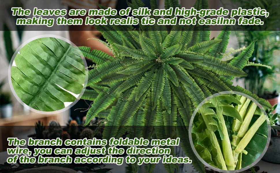 🌸【Full size and high quality】- Suitable for decoration:  This large Artificial plants Boston Fern contains 18 branches, making it looks very plump. The length of a single branch can reach 27.55 inches, and the horizontal expansion size can reach 43.30 inches, making it looks very large and full. It is very suitable for places such as courtyards, living rooms, offices, etc