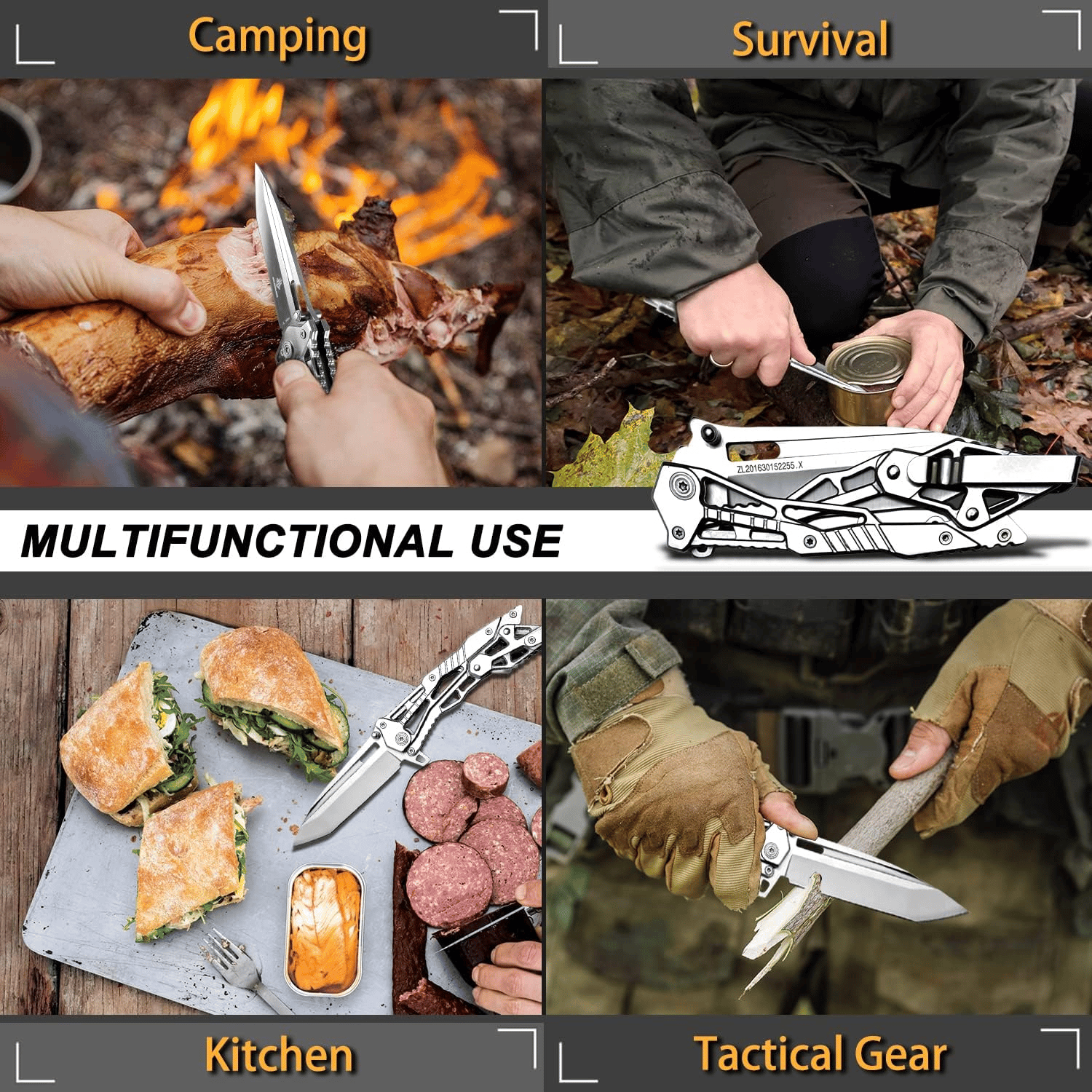⚡Lightning opening and closing: patented mechanical assisted quick opening system, 0.3 seconds one-handed instant release, decisive advantage in tactical scenes.