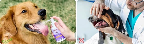 Our Spray is the latest product certified by VOHC. It can perfectly solve all pet oral problems, including periodontitis, swollen gums, etc. No side effects. Made from 100% natural herbs. Suitable for pet, including dog and cat. Actually works better than dog breath bones, freshener treats, breath freshener mints for dogs, dental chews, dog mouthwash, or other dog teeth cleaning and dental care products